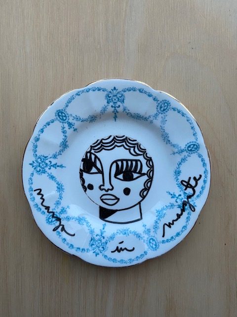 Hand illustrated vintage plates 12cm diameter